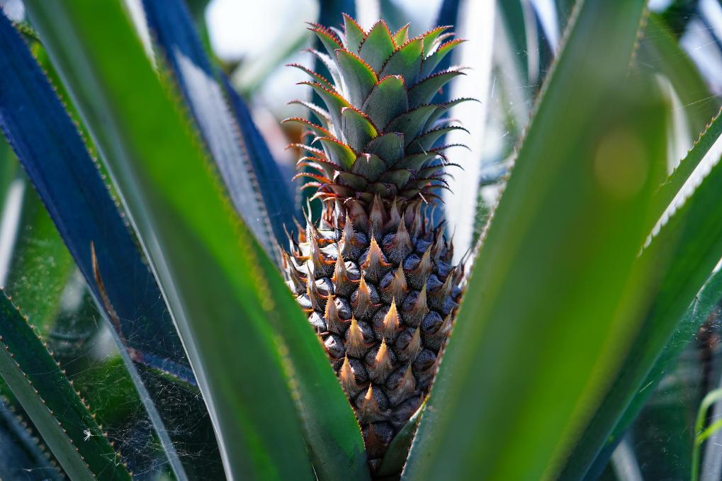 這是2024年12月23日在斯里蘭卡馬坎杜拉拍攝的中國技術試驗田裏的菠蘿。新華社記者陳冬書攝