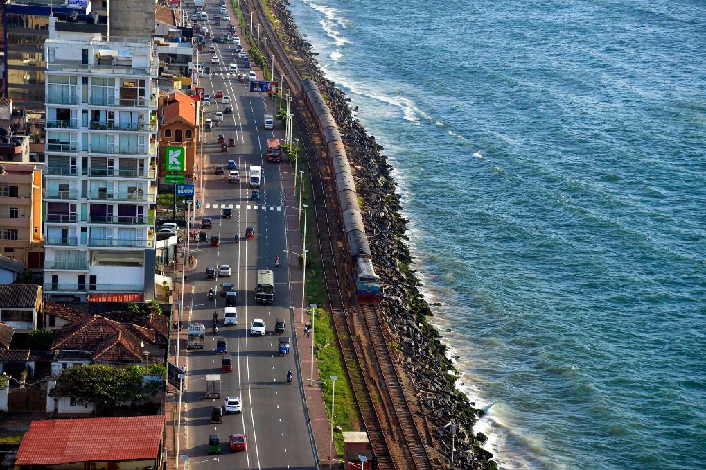 這是2024年12月23日在斯里蘭卡首都科倫坡拍攝的海邊小火車。新華社發(加揚·薩米拉攝)