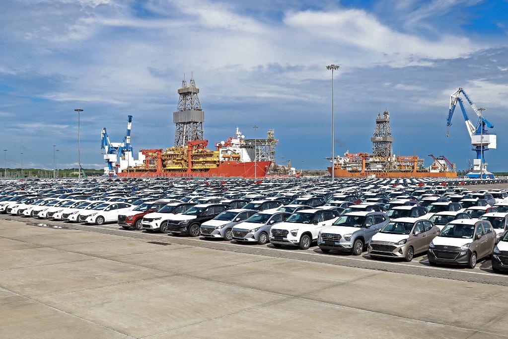 這是2021年12月14日拍攝的斯里蘭卡南部漢班託塔港堆場。新華社發(斯里蘭卡總理府媒體處供圖)