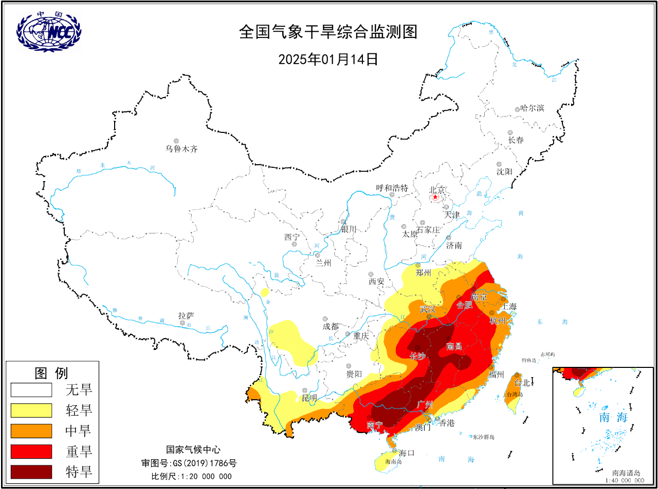 持續乾燥少雨,導致南方氣象乾旱成片發展,目前,江南、華南出現大面積中度到重度氣象乾旱,部分地區甚至達到特旱等級。