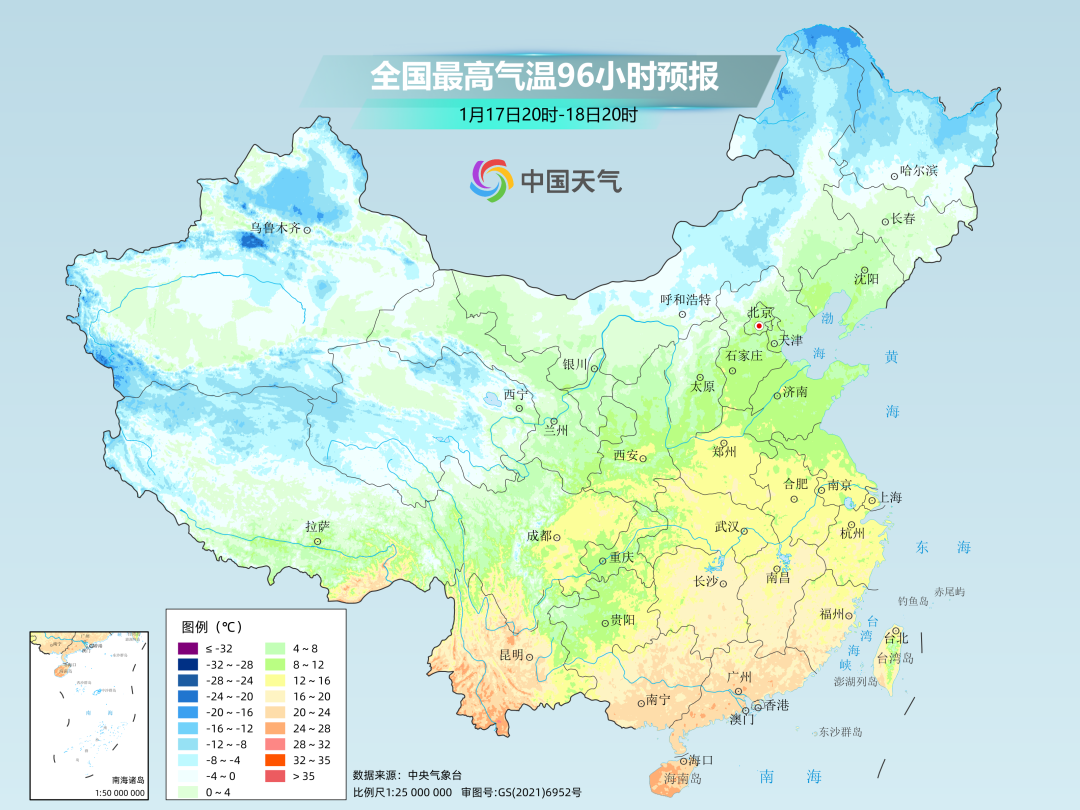 像瀋陽18日最高氣温7℃,西安19日16℃,武漢19日18℃,南昌19日19℃,長沙19日至20日20℃……