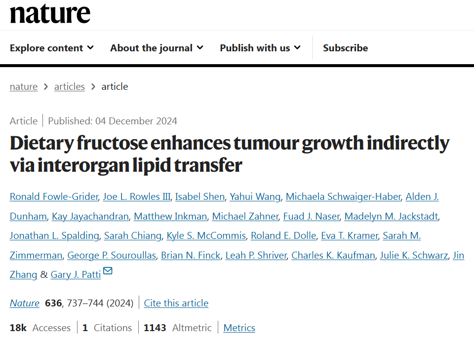 近日,美國哥倫比亞大學學者發表於《自然》的一項研究發現,果糖會通過肝臟代謝間接促使腫瘤生長。