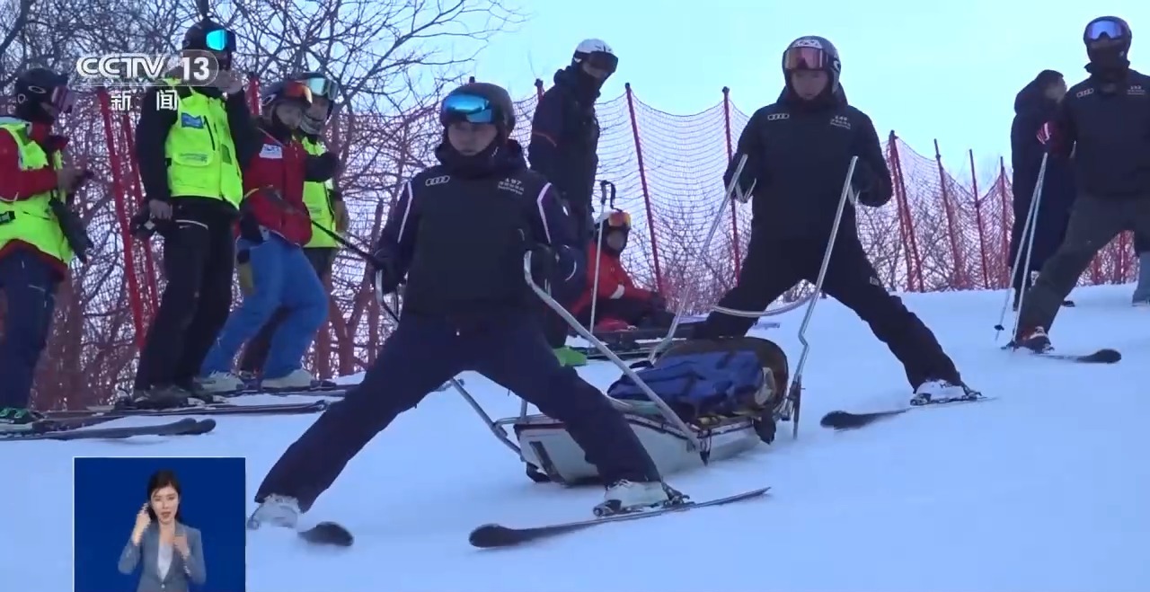 *北京大學第三醫院醫生 白鵬:*我們的巡救員要現場對他進行止血以及患肢的固定和包紮,因為這種損傷是在雪場最常見的,巡救員必須有高超的滑雪技能,能應付所有雪道和雪況,具備一定的院前急救的能力。