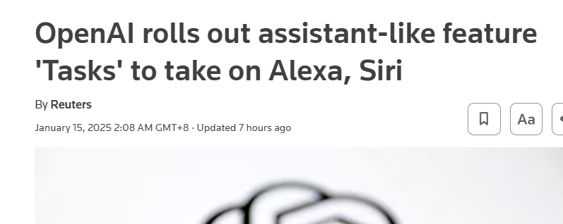外媒:OpenAI推出Tasks功能,進軍虛擬助手領域與Siri、Alexa競爭