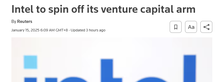 【環球網科技綜合報道】2025年1月15日,據路透社消息,芯片製造商英特爾公司當地時間週二宣佈,計劃將其旗下的風險投資和投資部門——英特爾投資(Intel Capital)分拆為一家獨立公司。