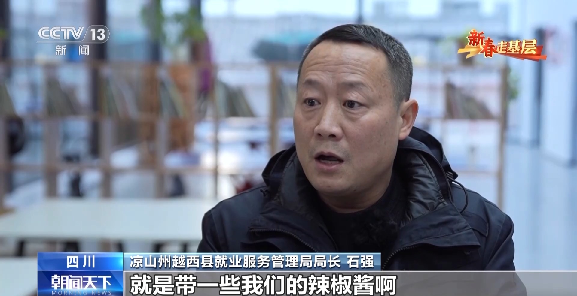 *涼山州越西縣就業服務管理局局長 石強:*出門總有思鄉的時候,就帶一些辣椒醬、豆腐乳,這些帶過去讓他解解饞,幫助他適應。