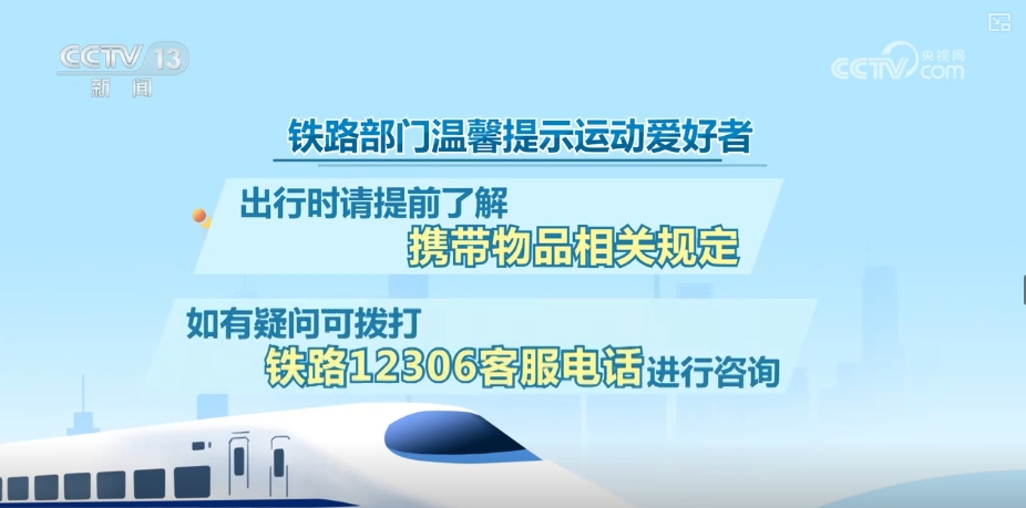 鐵路部門温馨提示運動愛好者,出行時請提前瞭解攜帶物品的相關規定,如有疑問也可撥打鐵路12306客服電話進行諮詢,以免耽誤您的行程。