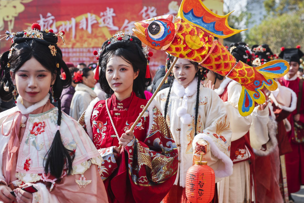 2024年12月31日,“宋韻思潮 尋跡匠心”杭州非遺年貨節在杭州市上城區望江街道日信國際廣場開市。(新華社記者 徐昱 攝)
