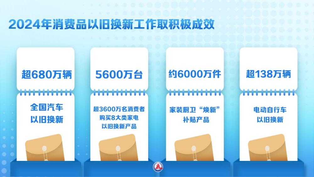 據介紹,2024年1-11月份,社會消費品零售總額44.3萬億元,同比增長3.5%。特別是消費品以舊換新工作取得了積極成效,據初步統計,2024年,全國汽車以舊換新超過了680萬輛,超3600萬名消費者購買8大類家電以舊換新產品超過5600萬台,家裝廚衞“煥新”補貼產品約6000萬件,電動自行車以舊換新超過138萬輛。消費品以舊換新帶動相關產品銷售額超過1.3萬億元。可以説,以舊換新換出了消費新動能、換出了綠色可循環,更換出了生活好品質。