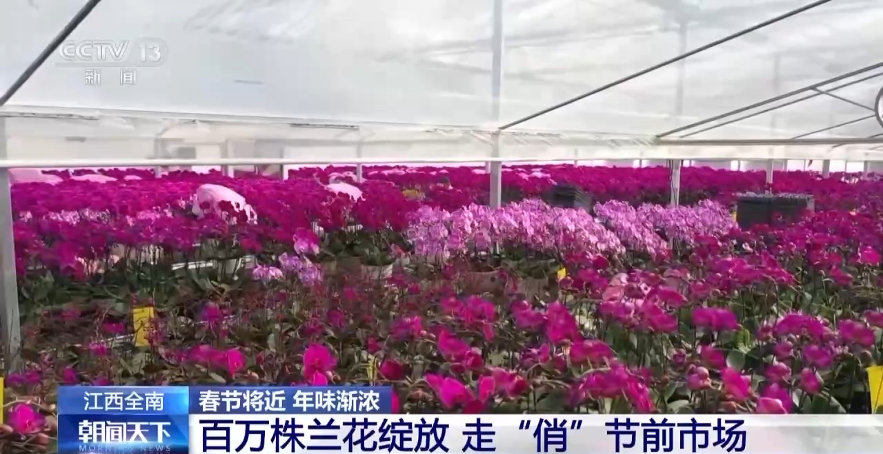 隨着春節臨近,花卉市場也逐漸升温。在江西贛州,全南縣種植的百萬株蝴蝶蘭、國蘭等花卉,競相綻放、美不勝收,呈現產銷兩旺的態勢。