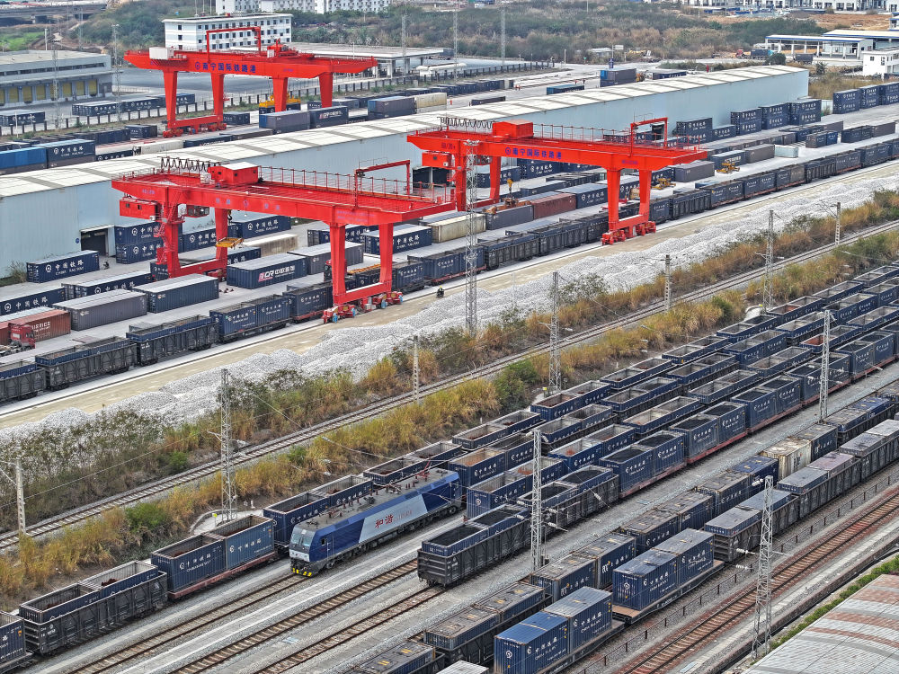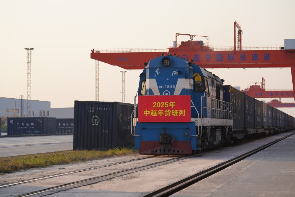1月15日,中越年貨班列在南寧國際鐵路港整裝待發。新華社發