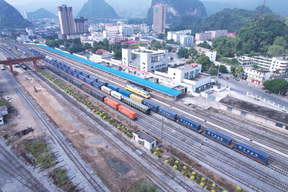 2024年10月17日,在國門車站憑祥站,中越班列列車整裝待發。新華社發