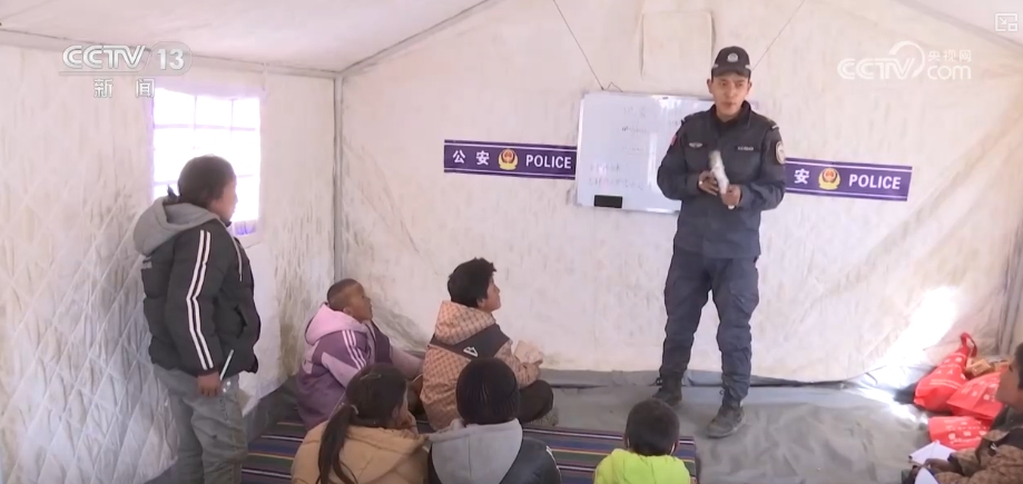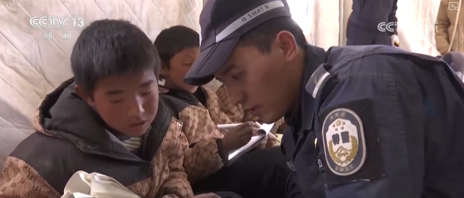 震區的羣眾現在不僅可以洗上熱水澡,日喀則特警支隊在定日縣古榮村還搭建了“帳篷學校”。年輕的特警化身教師,在這個特殊時期陪伴震區的孩子們學習、玩耍,帳篷內不時傳出歡聲笑語。