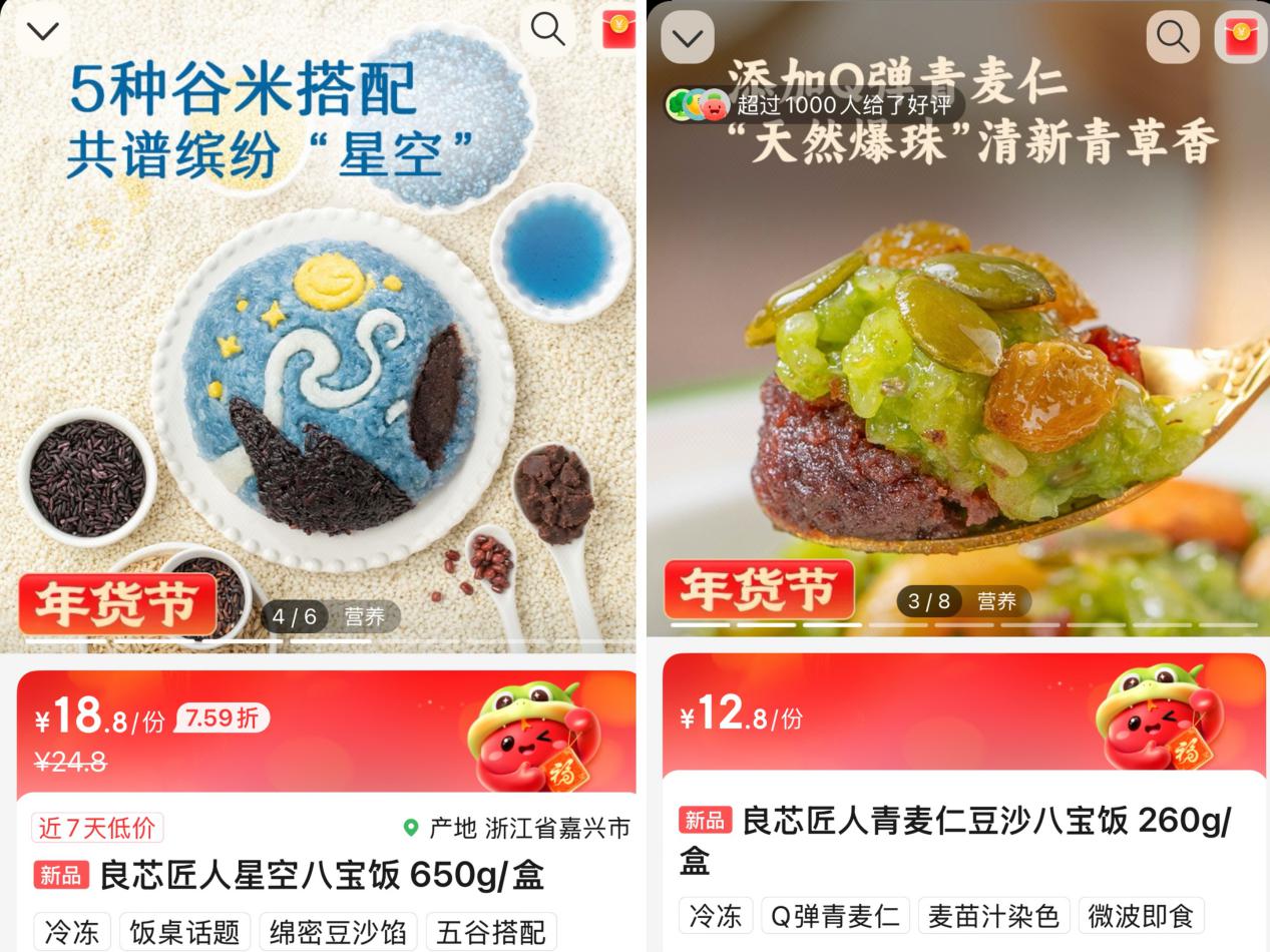 據介紹,今年叮咚買菜特別打造了“年貨大街”,匯聚了數十個品類和上千個SKU,從創意美食單品到精美禮盒,一應俱全。作為中國首個“世界非遺版”春節,在叮咚買菜的“年貨大街”上,一隻活靈活現的“醒獅花饃”吸引了眾多目光。據瞭解,這款花饃是在山東濰坊非遺花饃傳承人的指導下手工製作而成。除了非遺美食,叮咚買菜還推出了多款創意八寶飯。