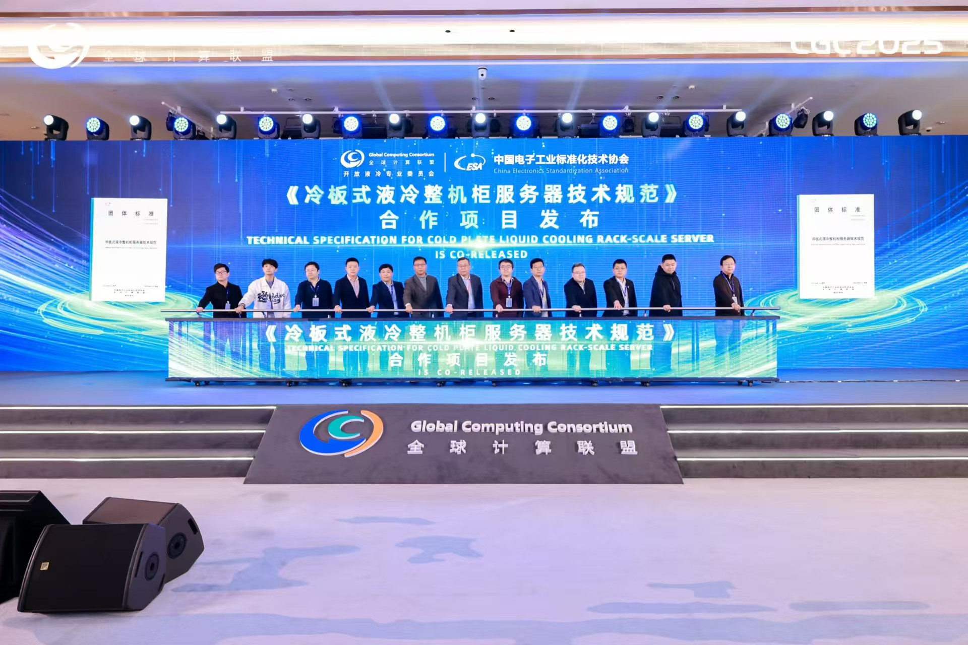 1 月 10 日大會當日,精彩好戲接連登台。率先登場的是中國電子工業標準化技術協會與全球計算聯盟攜手打造的重磅成果 ——《冷板式液冷整機櫃服務器技術規範》正式發佈。這一凝聚 30 餘家液冷產業鏈重點單位心力的規範,全面覆蓋機櫃、液冷、服務器節點、供電、網絡、管理、運行環境、實施運維等系統,創新性構建機櫃與服務器解耦新模式,為研發、製造人員提供清晰 “路線圖” 與操作指引,水電網盲插等新穎設計,大幅降低液冷盲插技術門檻,有望重塑整機櫃服務器產業格局,拓寬規模化部署通道。