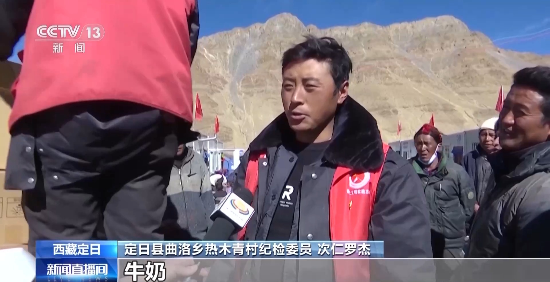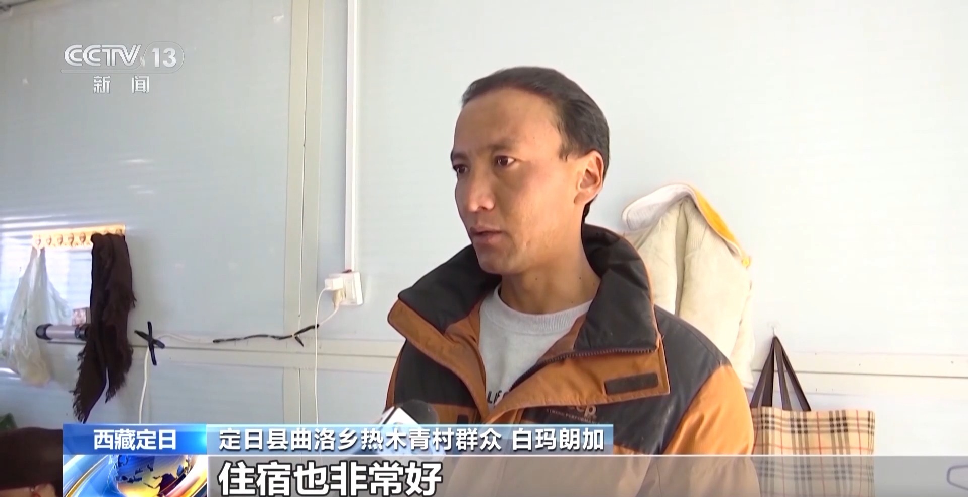 *定日縣曲洛鄉熱木青村羣眾 白瑪朗加:*物資每天都有,現在什麼都不缺,住宿也非常好,晚上這邊也可以烤火,特別暖和,更安心,特別踏實。