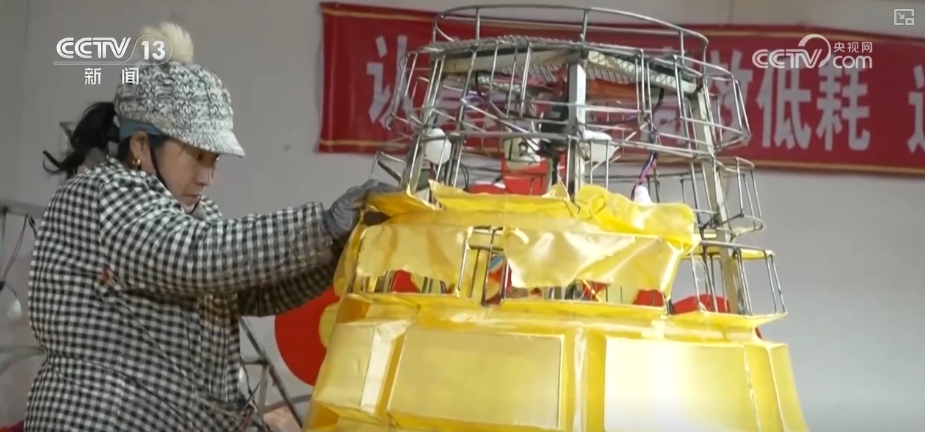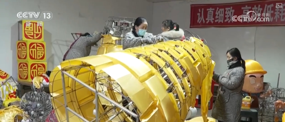 在橫渠村的一家花燈廠內,各式各樣的花燈擺滿倉庫,工人們切割鐵絲、焊接骨架、裱糊上色,緊鑼密鼓製作花燈。