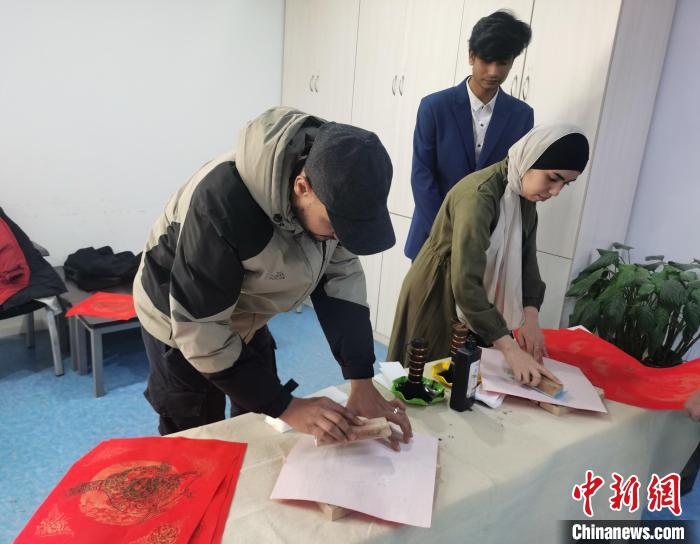 在孟加拉國留學生阿布看來,木版年畫拓印是比較新的體驗,藉助這一獨特的藝術形式,他能感受到藴含其中的精湛技藝和獨特審美。