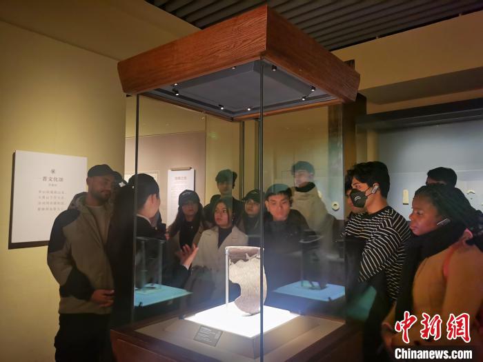 現場,在講解員的帶領下,留學生們不僅參觀了展廳的文物,還體驗投壺、木版年畫拓印、文物蓋章等活動,深入瞭解中國的悠久歷史和燦爛文化。