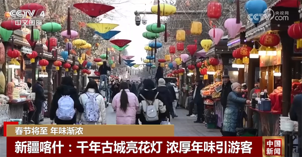 在新疆喀什古城,景區工作人員在街道兩側懸掛起燈籠,還在一些路段懸掛了造型燈飾、彩色燈帶等,為羣眾展現出一個流光溢彩的喀什古城。據介紹,今年春節期間,喀什古城還將陸續推出各類精彩的演藝項目。