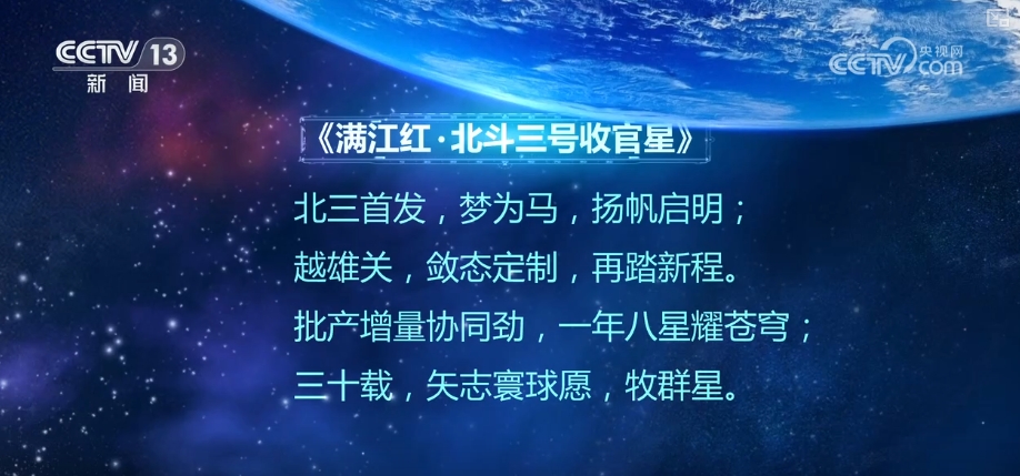 這是北斗三號衞星系統首席總設計師林寶軍寫的一首詞《滿江紅·北斗三號收官星》,記錄了北斗三號建設的關鍵節點,也梳理了北斗30年的發展脈絡。
