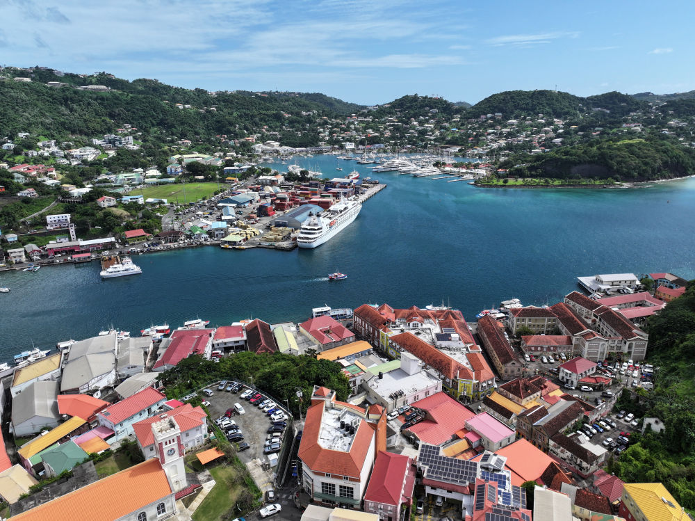 這是1月7日拍攝的格林納達首都聖喬治風光(無人機照片)。新華社記者趙凱攝