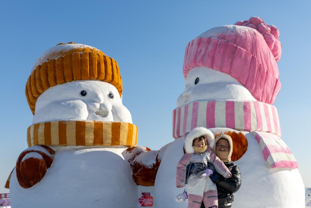 1月15日,遊客在“爾濱之心歡樂島”內拍照。新華社記者 張濤 攝