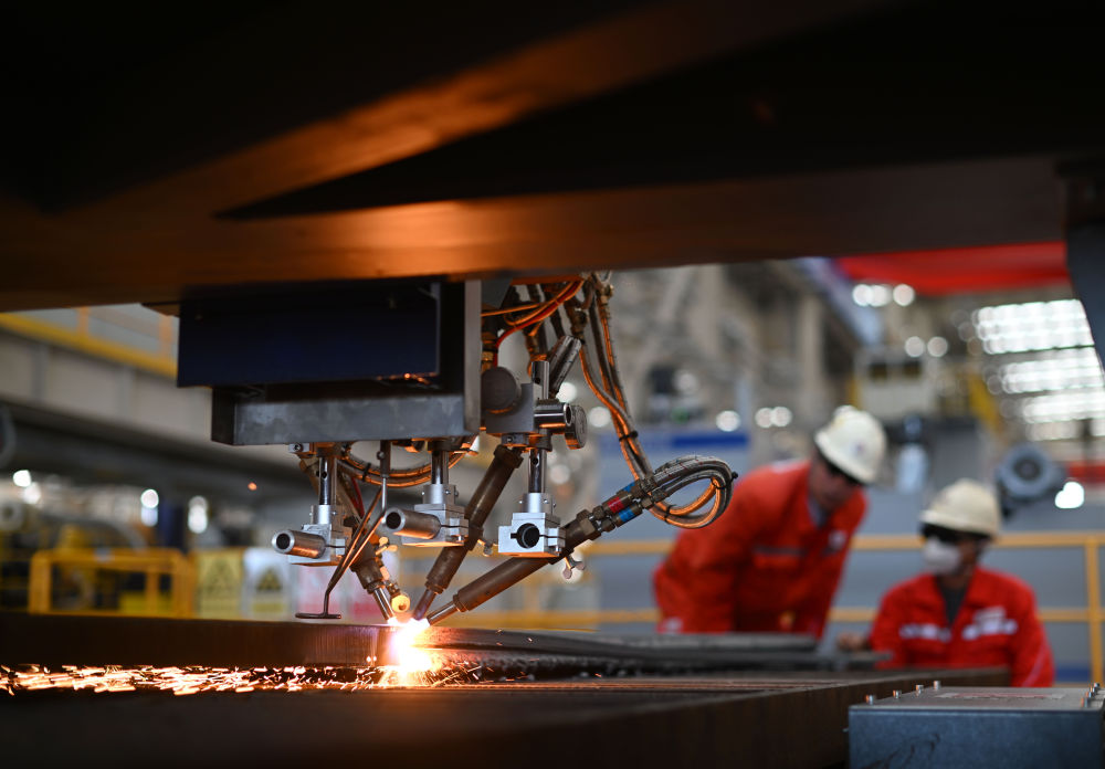 工作人員在海油工程天津智能製造基地制管作業車間調試數控切板機(2024年10月30日攝)。 新華社記者 趙子碩 攝