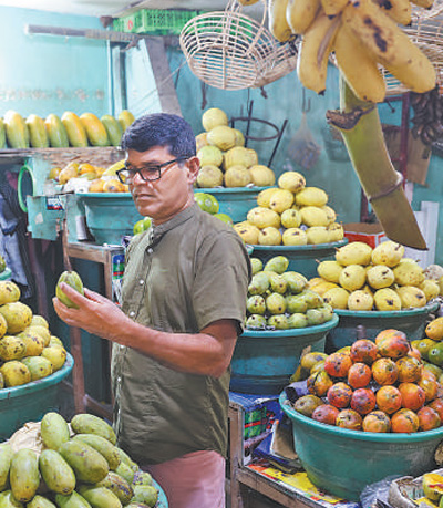 科倫坡市中心水果市場,當地居民正在選購新鮮水果。