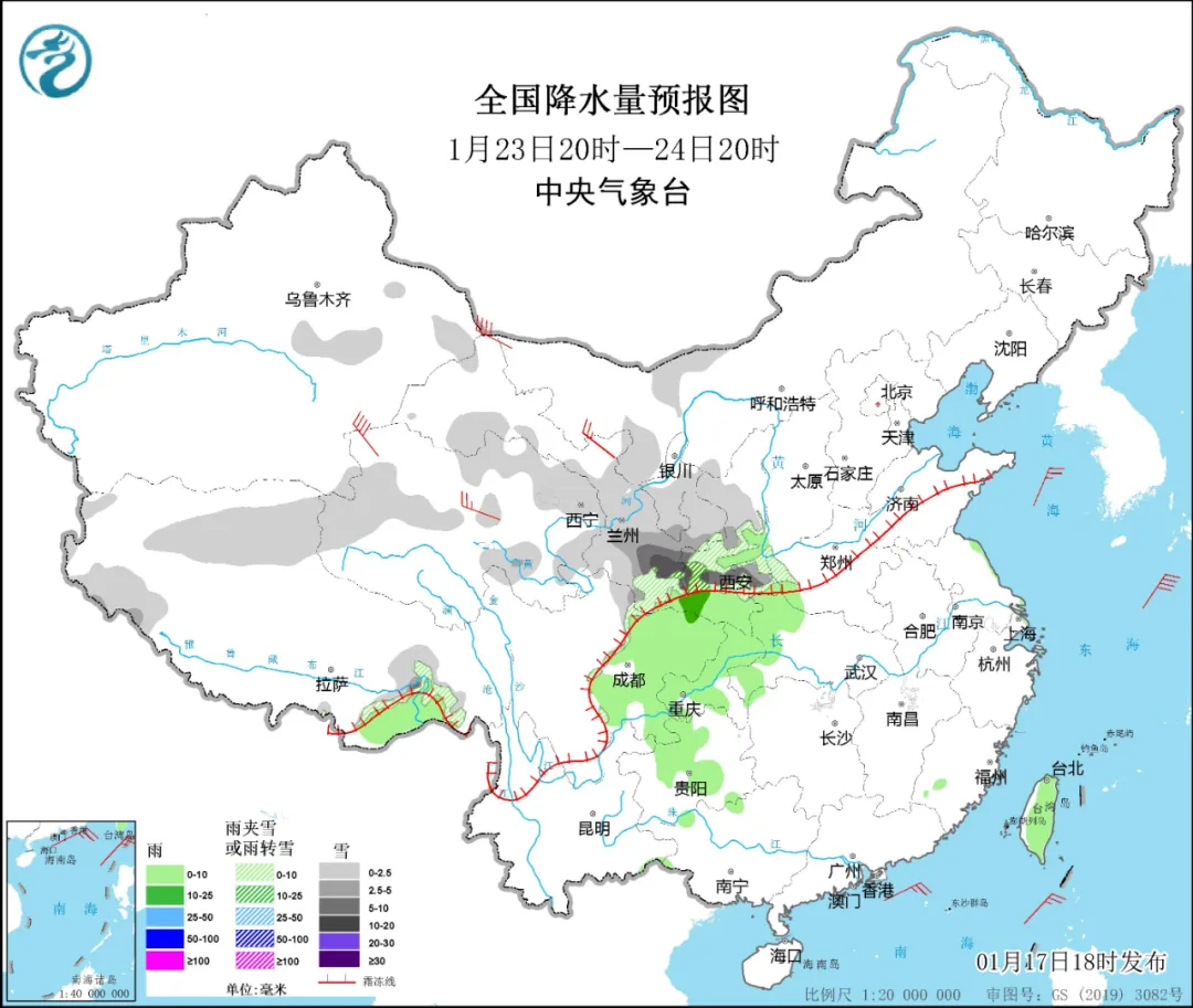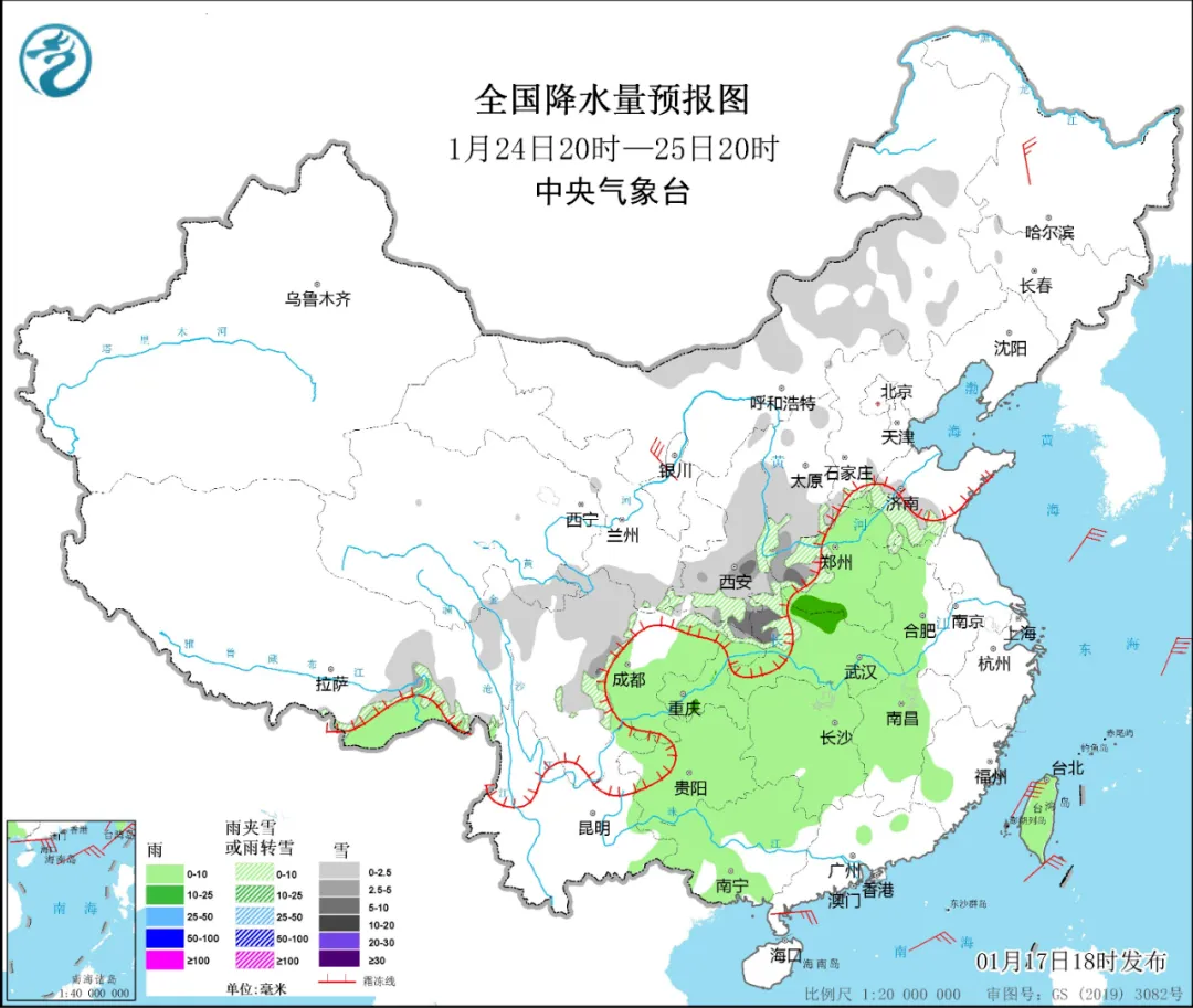 *23-25日,中東部地區將自西向東出現一次較大範圍降水過程,*西北地區、華北、東北地區、黃淮有小到中雪或雨夾雪,局地大雪;西南地區東部、江漢、江淮、江南、華南等地有小到中雨。而24-25日(臘月廿五、廿六)已臨近除夕,正是春運高峯期,回家的人需注意。