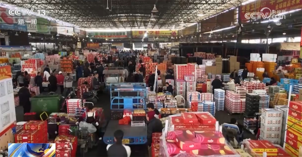 隨着春節臨近,福建福州閩侯縣的海峽果品批發市場迎來銷售高峯,日交易量達1900噸。車釐子、柑橘、蘋果、香梨等“年貨”交易量增長迅速,供銷兩旺。