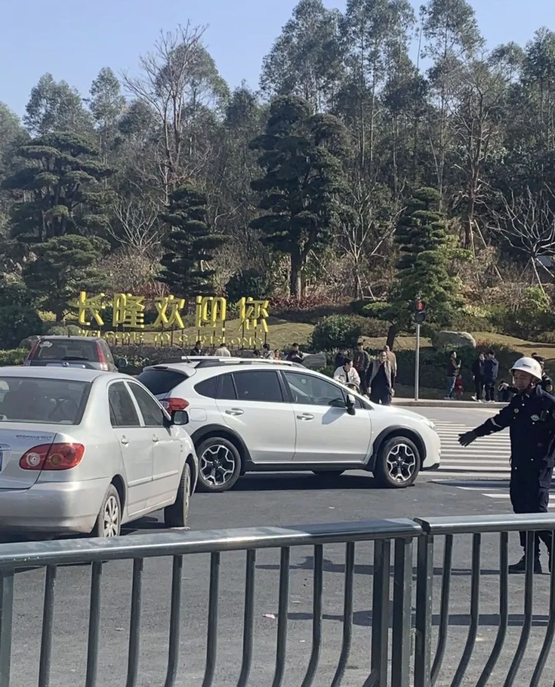 現場可以看到,雖然景區未開放,但交警部門一早便已到場維持秩序,確保現場的交通和人員安全。在景區門口,不時有試圖進入景區的小車被截停,原路返回。一些市民則在大門旁的迎客松招牌下打卡拍照,他們臉上雖有小小的失落,但更多的是對清遠長隆早日開園的期待。