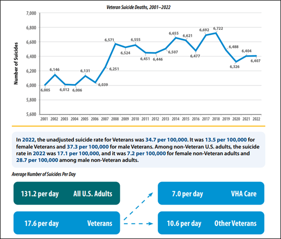 據美國退役軍人事務部發布的統計數據,美國平均每天約有17.6名退伍軍人自殺,比例遠高於美國其他職業羣體,患有精神疾病或面臨經濟困難是導致自殺的主要原因。