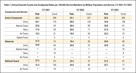 圖片截取自美國國防部“預防自殺辦公室”年度報告