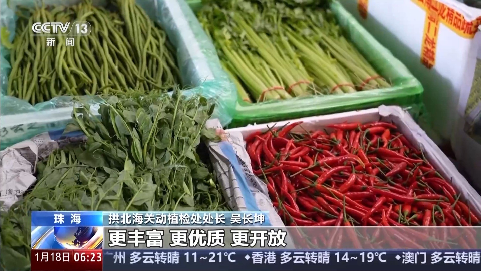 *拱北海關動植檢處處長 吳長坤:*現在,我們正在進一步完善農食產品檢測結果和監管互認機制,加快探索創新活豬供應港澳、港澳食品進入內地的監管模式,實現更多的“雙向奔赴”“三地聯動”,讓我們的“菜籃子”更豐富、更優質、更開放。