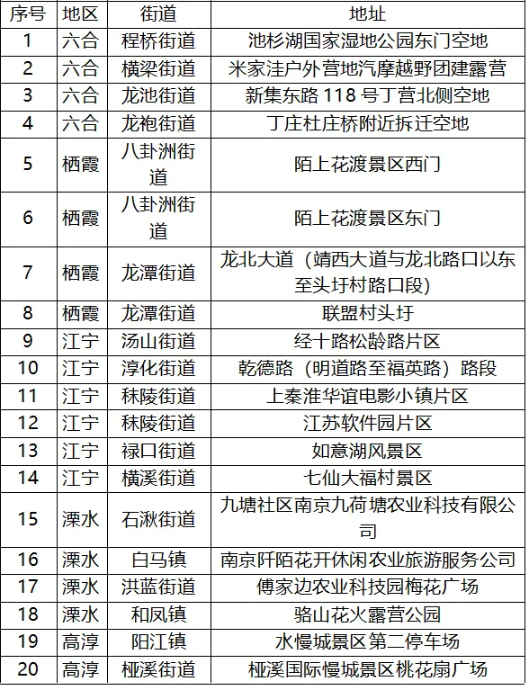 棲霞、江寧、六合、溧水、高淳區部分區域。