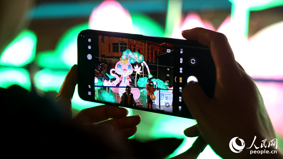 蛇年生肖造型花燈“人氣旺”。人民網記者 陳博攝
