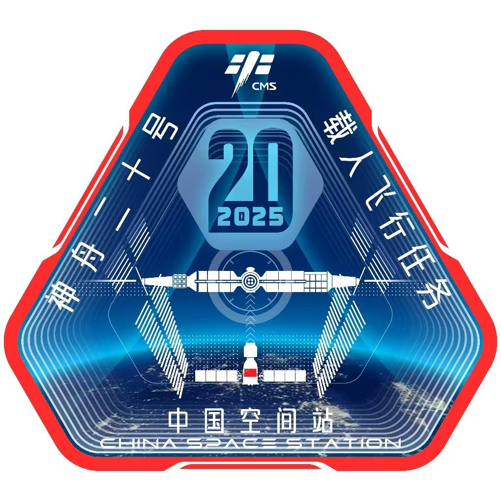 神舟二十號載人飛行任務標識,融合傳統與創新,以穩定三角形為基,象徵航天人在經驗基礎上攀登新高峯。