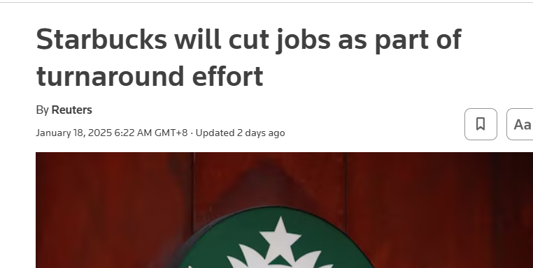 外媒:星巴克宣佈裁員計劃作為轉型舉措一部分