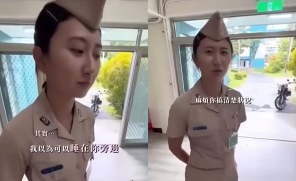 其後,女學生介紹海軍薪資,提到官校學生每個月可領5萬多元新台幣時,反問模擬新生者“有沒有心動”?對方卻回答稱:“我的心都在裏面了,反正有美女學姐帶着,多少都OK啊!”