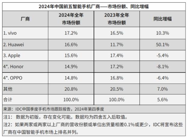 機構:2024年中國智能手機市場出貨量同比增長5.6%