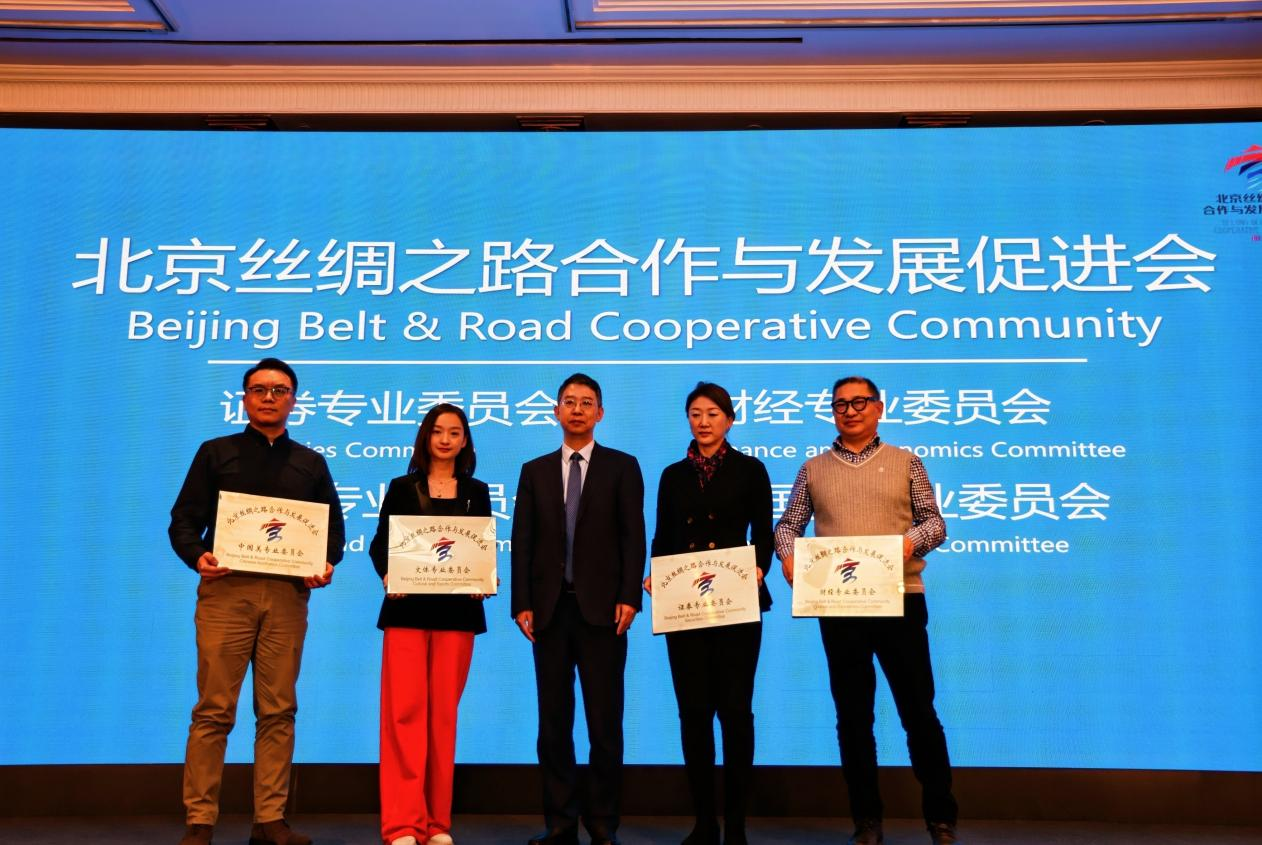 論壇上,北京絲綢之路合作與發展促進會宣佈成立證券專業委員會、財經專業委員會、文化體育專業委員會、中國美專業委員會,董少鵬會長向四個專業委員會授牌。