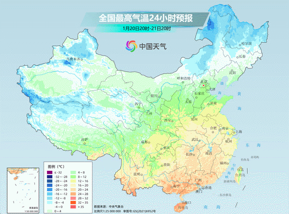 由於近期冷空氣偏弱,23日之前,中東部大部地區明顯偏暖。東北地區南部最高氣温將回到0℃以上;華北南部、黃淮最高氣温能達到10℃上下,甚至超過15℃;江南大部最高氣温將達20℃+,白天暖出常年春分甚至清明時節的水平。