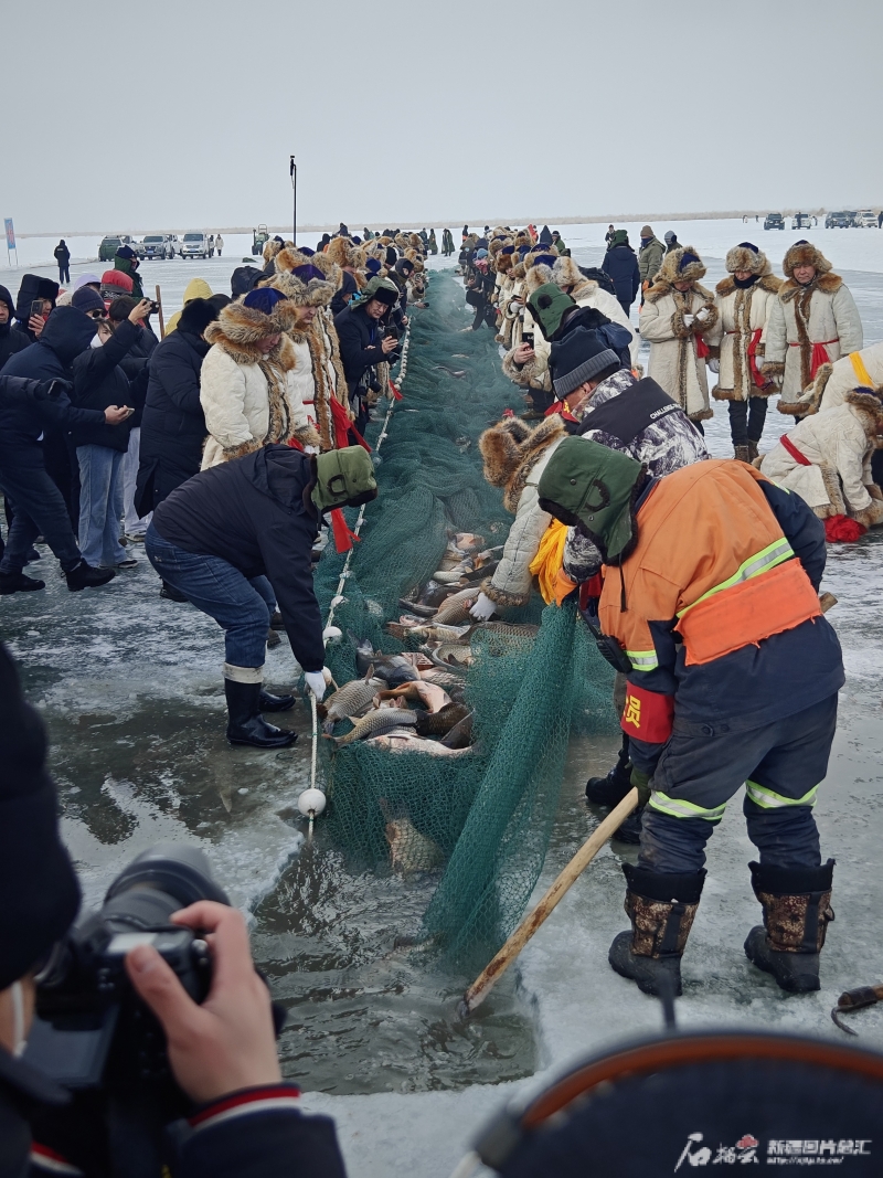 第十八屆烏倫古湖冬捕文化旅遊節第一網魚。苗學龍攝