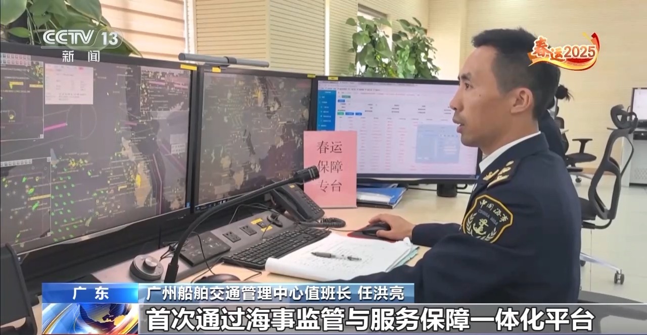廣州船舶交通管理中心值班長 任洪亮:我們升級了珠江口船舶交通管理系統,首次通過海事監管與服務保障一體化平台,實現了對珠江口所有的港澳高速客船智能化跟蹤航行軌跡。