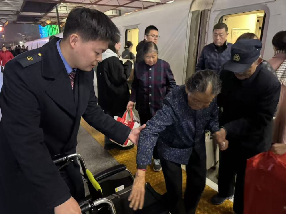 圖為1月18日,蘇州站鐵路工作人員為進城高齡老人提供暖心到站接車服務。新華社發 馬驍攝