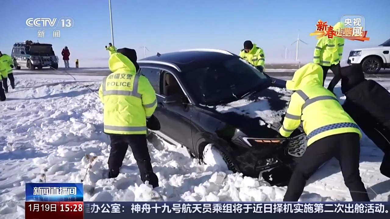 *托里縣公安局阿合別裏鬥派出所所長 馬延超:*每年冬天風雪都是躲不過去的歷練,我們就全靠人力、鐵鍁,像剛才看到那樣。現在上級黨委一直給我們支持保障,救援條件越來越好。
