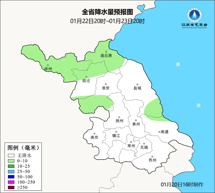 全省過程降温幅度將達12~14℃,最低氣温將出現在28−29日早晨,大部分地區有嚴重冰凍。26−27日全省及沿海海面風力較大,將有陸上6~7級、沿海及江河湖庫8~9級的西北大風。另外,23−24日早晨淮河以南部分地區關注大霧天氣。