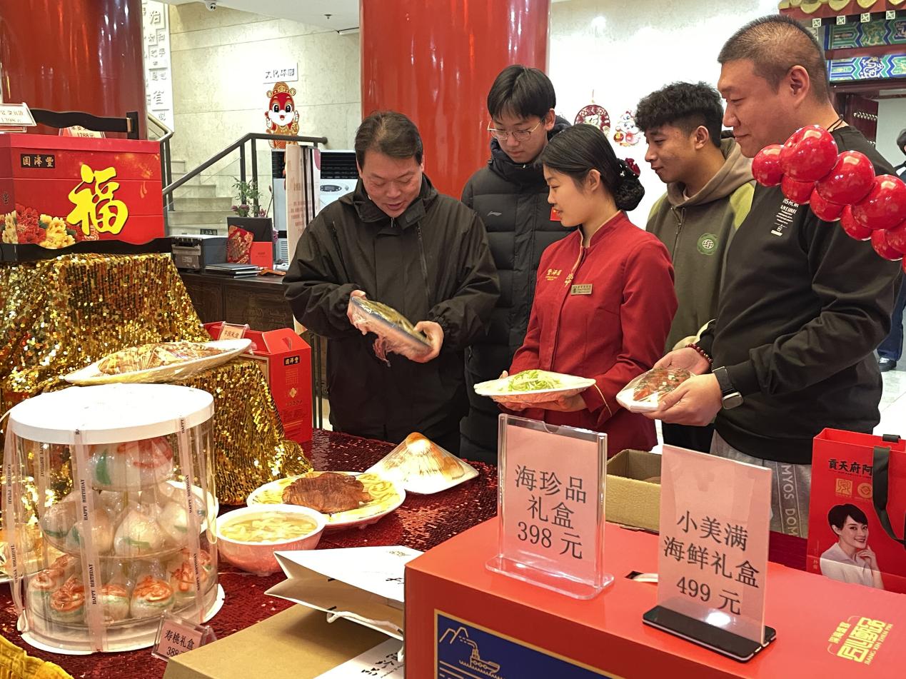 除了傳統的特色麪食,今年豐澤園還在春節期間推出了一系列山東特色產品。煙台蘋果和蜜薯,口感清甜,營養豐富;濟南的味道伴手禮,將濟南的特色美食一網打盡;長島的乾貝柱、金鈎海米以及各類海鮮禮盒,更是讓喜愛海鮮的顧客大飽口福。