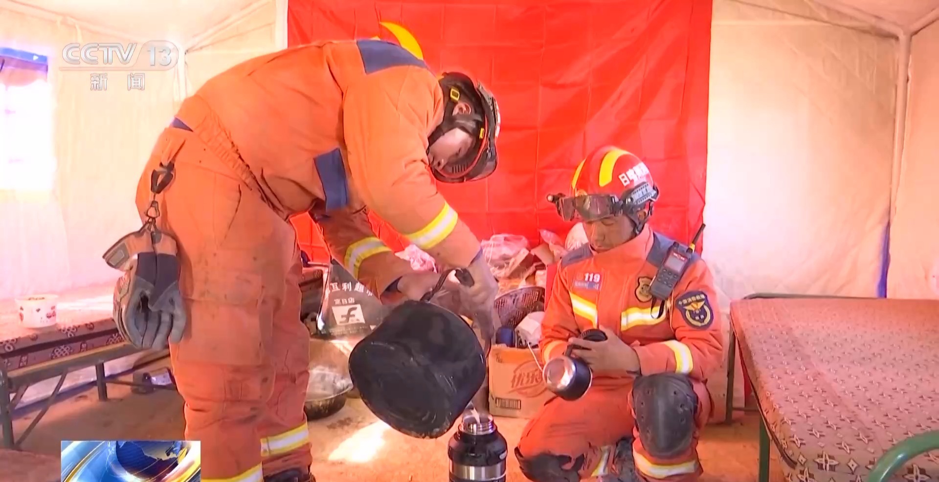 甜茶、藏面、熱牛奶,在這個臨時帳篷裏,消防員們正在為木隊村的百姓們製作當天的午飯。